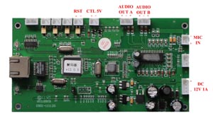 EVA-D901是一塊ARM+DSP構(gòu)架,專注于網(wǎng)絡(luò)音頻傳輸?shù)目刂颇K,具有10/100M 以太網(wǎng)接口,可通過網(wǎng)絡(luò)進(jìn)行單向MP3音頻流和雙向語音傳輸。EVA-D901可直接與外部音頻功率放大器連接,組成網(wǎng)絡(luò)音頻廣播終端。也可直接接入麥克風(fēng),利用本機(jī)的3W音頻功放,組成對(duì)講終端。